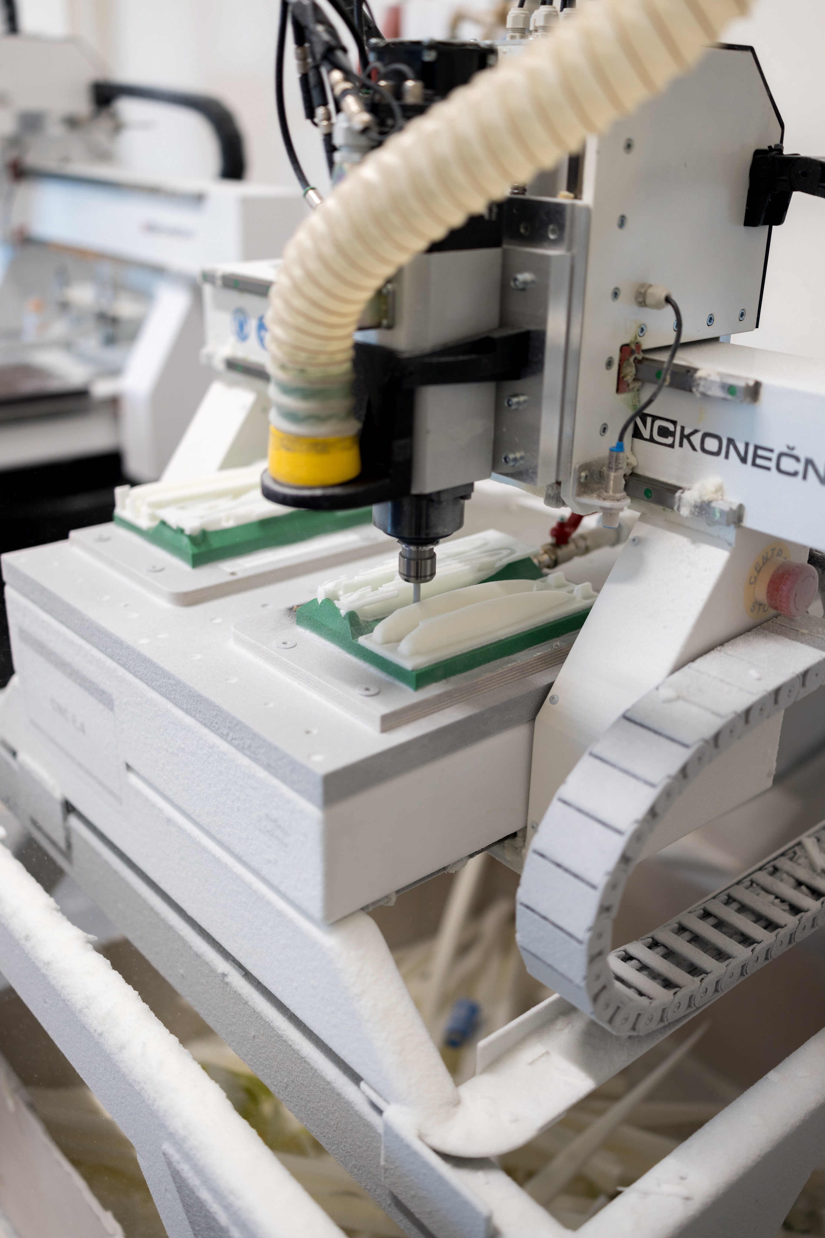 Step 2. Depending on the design of the propeller, PMI foam core is machined in Mejzlik’s machine shop.